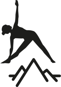 Observe le dessin de la posture, tu peux voir un grand triangle, un plus petit entre les jambes et un autre entre la cuisse de la jambe, le buste et le bras avant. Regarde la ligne que tracent les bras entre la main vers le sol et la main vers le ciel. Pour entrer dans la posture, écarte les jambes et lève les deux bras à la hauteur des épaules. Tourne le pied droit à 90 degrés devant toi, et le pied gauche légèrement vers l’intérieur. Imagine que l’on te tire par la main droite et que cela entraîne ton buste en direction de ton pied avant. Sens la ligne que forment tes bras, bascule cette ligne, les bouts des doigts de ta main droite viennent en contact avec ton tibia ou le sol et la main gauche vers le ciel. Sens ton buste très allongé des 2 côtés et ta poitrine ouverte face au paysage. Tu peux regarder soit devant toi, soit en direction de ta main gauche. Visualise-toi, comme si tu te regardais de l’extérieur, toi et tes belles lignes dans ce paysage entre ici et le glacier, entre la terre et le ciel.
