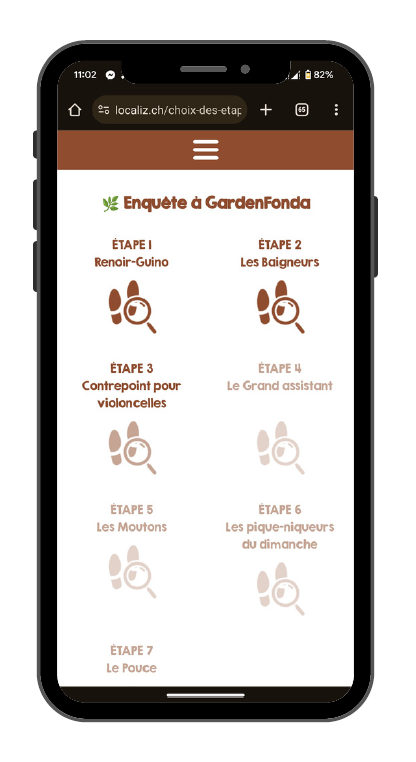 À chacune des étapes se trouve un lien vers une carte des jardins de la Fondation, vous indiquant l’emplacement à trouver pour continuer votre parcours vers la prochaine statue.